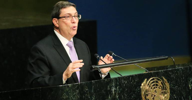 El jefe de la diplomacia cubana defendió que el embargo "es una violación flagrante, masiva y sistemática de los derechos humanos de todos los cubanos" e insistió en que es "el principal obstáculo para el desarrollo económico y social" de la isla.