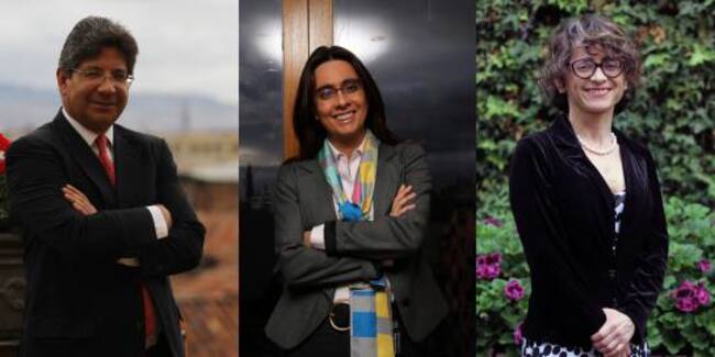 En la foto de izq. a dere. Alejandro Linares; abogado especialista en finanzas y candidato a doctor de la Universidad Externado, Catalina Botero; conjuez de la corte constitucional y Magdalena Correa; doctora en derecho constitucional.