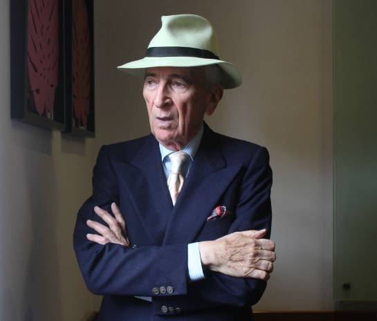 Parece un personaje sacado de alguna película de cine negro de los años cincuenta, un periodista de la vieja escuela, clásico, elegante, cruzado de piernas aguarda a la primera pregunta mientras bebe otro sorbo de su bebida.