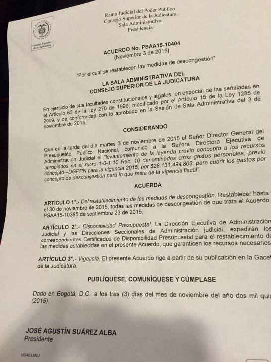 Según fuentes de la judicatura se logró reunir los recursos para extenderlos hasta el próximo 30 de noviembre, pues el gobierno nacional desembolsó los más de 28.000 millones de pesos que eran necesarios para la prórroga.