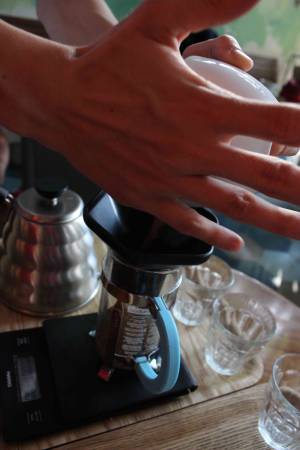 El tiempo de extracción en este método se prolonga un poco más en comparación con el Chemex o el v60, dado el grosor del grano, porque el agua necesitará más tiempo para extraer de allí lo necesario.