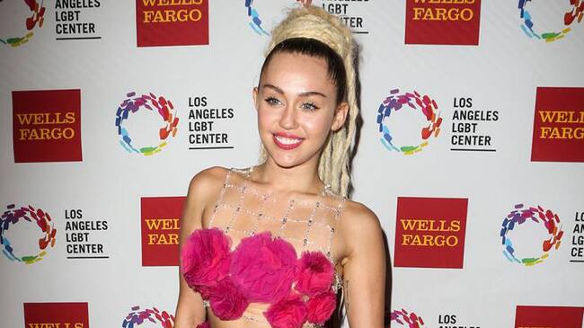 Miley Cyrus en la gala de los premios Vanguard del centro LGBT de Los Ángeles.(Bang Showbiz)