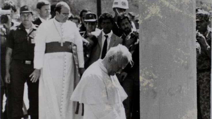 Papa Juan Pablo Segundo rezó por las víctimas en Armero