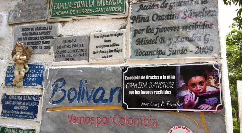 Las placas rezan “Gracias Omaira por los favores recibidos”, “En acción de gracias, Omaira Sánchez”, “A Omaira por todas sus bendiciones”.