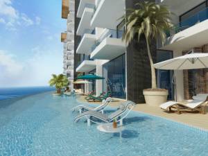 En vivienda, el complejo presenta acabados con el mármol como protagonista, junto con los mesones en Quarztone, alturas libres de 2,60 metros y ventanería en PVC que aísla el ruido y produce un efecto térmico refrescante. Todo en un entorno paradisíaco, con una piscina de horizonte infinito de más de 150 metros, una de las más largas del país, con gimnasio, zonas húmedas, BBQ, parque infantil, salas de reuniones y de negocios; más de 5.400 metros cuadrados de un verdadero club a orillas del caribe.