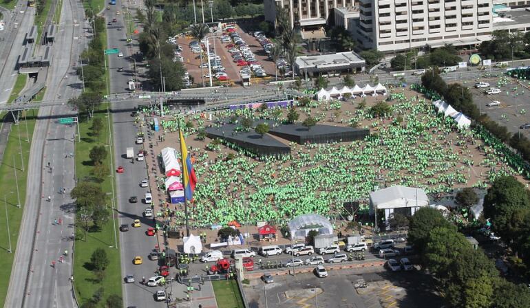 Durante la mañana de este domingo un cuadrante de 10 kilómetros en Bogotá se cubrió con un tape verde encendido. 8.400 personas inscritas en la primera carrera por la Policía se uniformaron con una camiseta y ganas de rendir un homenaje a los hombres y mujeres de la institución afectados en el conflicto armado que vive el país.