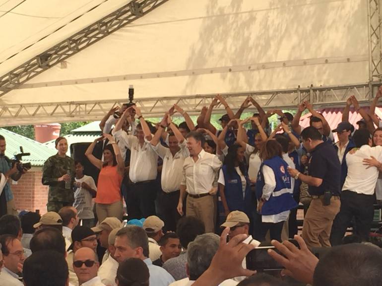 El 21 de marzo de 2013, en este mismo lugar de los Montes de María, el presidente de la República, Juan Manuel Santos, puso la última primera piedra del primer paquete de 100 mil viviendas gratis; hoy dos años y 8 meses después, en un tiempo récord, el mandatario de los colombianos, con el vicepresidente Germán Vargas Lleras, y el ministro de Vivienda, Ciudad y Territorio, Luis Felipe Henao Cardona, anunciaron al país la terminación de las obras.