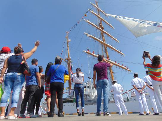 Este jueves, el Buque insignia de la Armada Nacional fue despedido por autoridades militares, de Policía y familiares de los marinos en formación, quienes conjugaron sentimientos de alegría y nostalgia deseándoles a estos jóvenes buen viento y buena mar durante el crucero, que finaliza el 21 de diciembre en la ciudad de Cartagena de Indias.