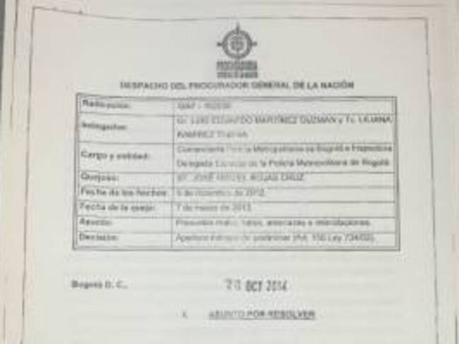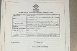 Casi un mes después, el 20 de octubre de 2014 el despacho del Procurador General Ordoñez ordenó la apertura de una indagación preliminar contra el general Martinez por "presuntos malos tratos, amenazas e intimidaciones” en contra del Subteniente de la Policía Nacional, José Miguel Rojas Cruz, cuando el oficial se desempeñaba como comandante de la policía metropolitana de Bogotá.