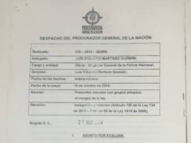 Son cuatro las indagaciones preliminares que adelanta la Procuraduría General de la Nación en contra del Brigadier General, Luis Eduardo Martínez, las cuales fueron conocidas en su totalidad por Caracol Radio.