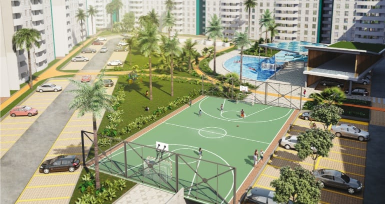 El proyecto consta de unidades de vivienda de 63.73 mts2 con 5 tipos de distribución diferentes. Además, en el centro del conjunto se encontrará una piscina familiar con un carril especial de nado para quienes quieran practicar natación. Igualmente, dentro de los espacios deportivos se constriurá una cancha múltiple para la práctica de fútbol, voleibol y baloncesto. Como complemento, también se proyecta un muro de tenis para prácticas en solitario o parejas, una jaula de bateo, una cancha de voley playa y un circuito completo para el atletismo con 700 metros lineales.