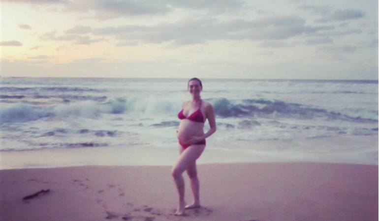 La foto fue publicada en la cuenta personal de la actriz, quien decidió posar en bikini para mostrar su barriga.