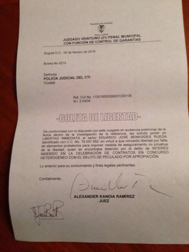 Un juez de garantías dejó en Libertad al empresario, Eduardo Benavides, al considerar que la Fiscalía no demostró con suficiencia la necesidad de imponerle una medida de aseguramiento.