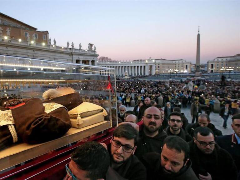 El cadáver y restos de Padre Pío se muestran en la basílica de San Pedro a la veneración de los fieles en el Vaticano.