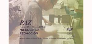 En el marco del día del periodista, la Fundación para la Libertad de Prensa ( FLIP), presentó su informe anual sobre el estado de la libertad de prensa 2015, “ Paz en los titulares miedo en la redacción”, donde se hace un balance de los ataques a periodistas y medios de comunicación documentados por la ONG, a la vez que se exploran algunos factores que determinan las condiciones para ejercer el oficio en Colombia. En el evento también tuvo lugar el lanzamiento del documental “En el medio, los silencios del periodismo colombiano”.