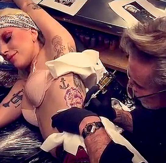 Mark Mahoney fue el encargado de realizar el tatuaje de Gaga quien siempre ha manifestado su admiración por el 'Duque blanco'.