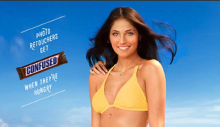 En un principio, esta fotografía en la que está plasmada la modelo no fue creada con ánimo de hacerse viral en las redes sociales, ya que la reconocida maraca de chocolatinas Snickers la publicó en la portada de la revista Sports Ilustrated. El objetivo de la imagen fue desarrollar una idea publicitara en la que se resumía la siguiente frase “Los “retocadores” de fotos se confunden cuando tienen hambre.