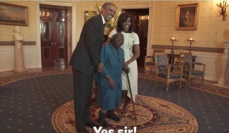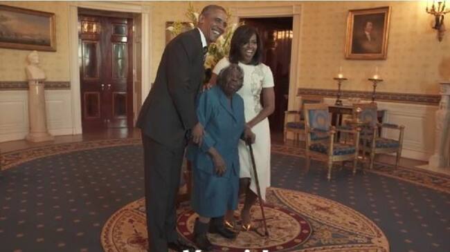 En la reproducción se logra apreciar a la anciana saludando efusivamente al presidente y expresando alegría al conocerlo y poder decir que Estados Unidos tiene un “presidente negro”, luego le da un abrazo a la primera dama. Luego se convirtió en una fiesta la visita pues la mujer de 106 años se puso a bailar, y Michelle la acompañó con algunos movimientos.