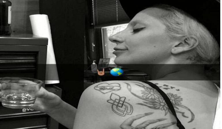 Gaga ha publicado una imagen en su cuenta de Snapchat en la que muestra el símbolo que se ha tatuado en el hombro izquierdo, junto al mensaje: "Durante los ensayos el resto de supervivientes y yo marcamos la diferencia".