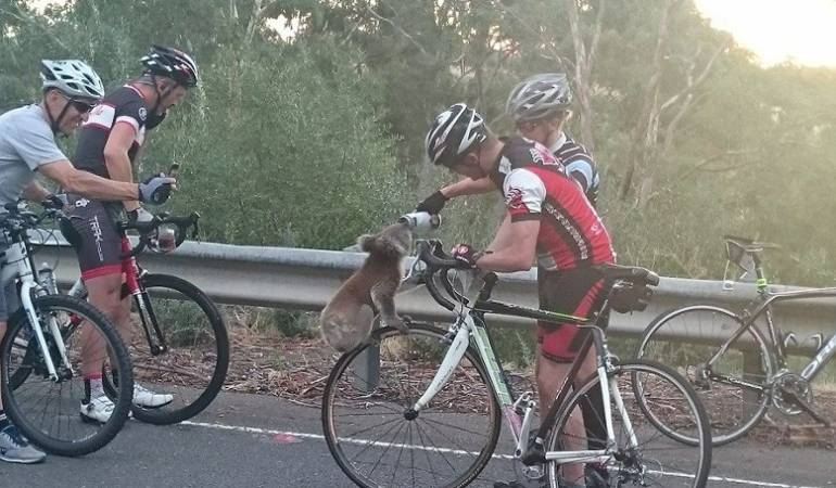 El tierno koala que detuvo a unos ciclistas para pedirles agua