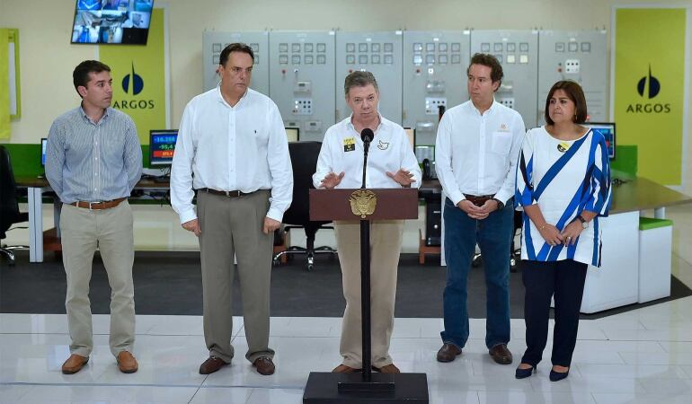 “Este Niño que nos está afectando de una forma tan dura, nos está poniendo a trabajar todos juntos para salir más fortalecidos, que lo que estábamos antes del inicio de este desastre natural”, sentenció Santos durante su visita a la planta generadora de Argos en la zona industrial de Cartagena.