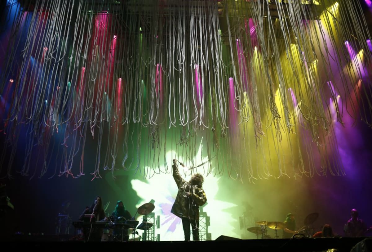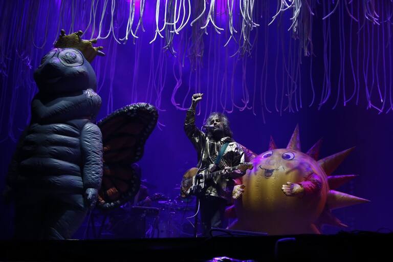 Más allá de la música, de los sonidos que han logrado atrapar a seguidores desde 1983, Wayne Coyne dirige una especie de concierto circense que integra una banda con confetis, muñecos gigantes, bombas y juegos de luces.