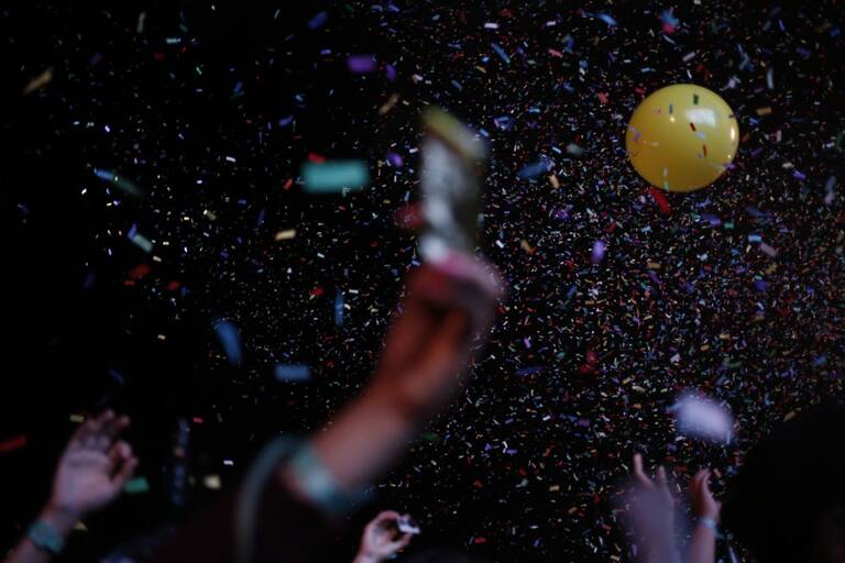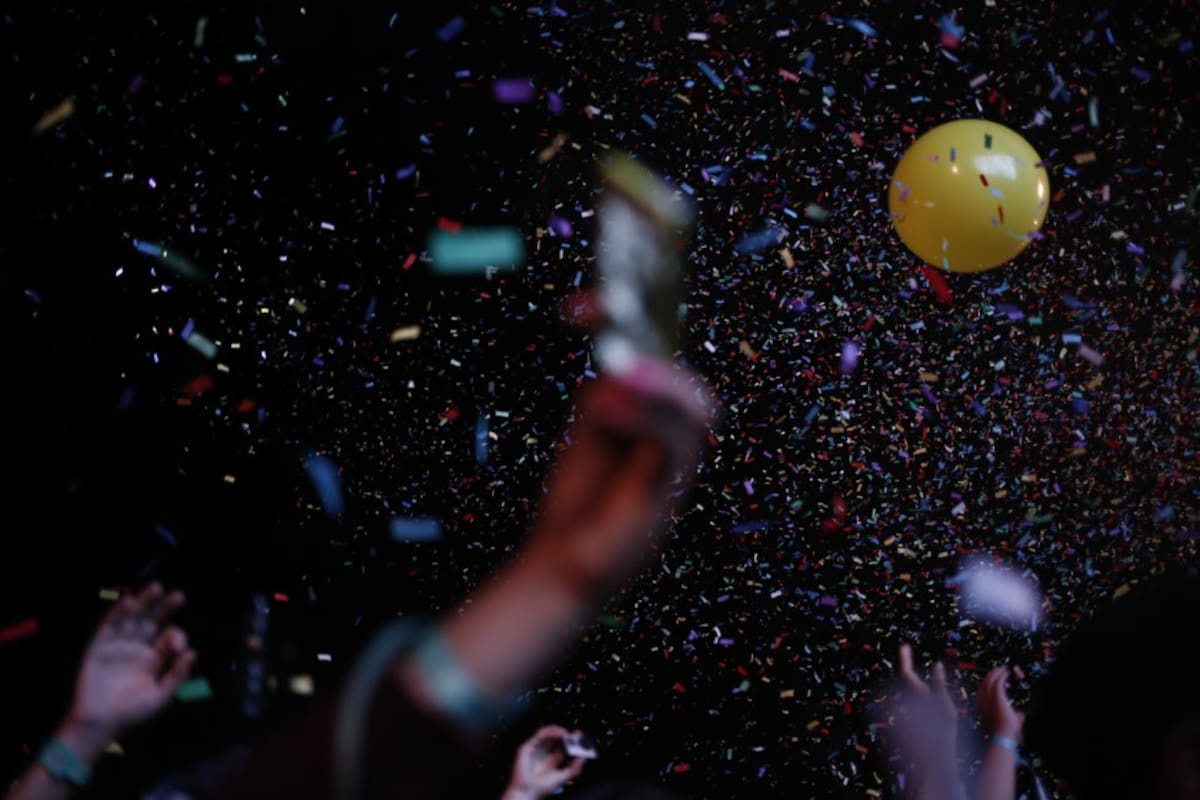 Bombas que al explotarse botaban serpentinas se repartieron entre el público y tarima.