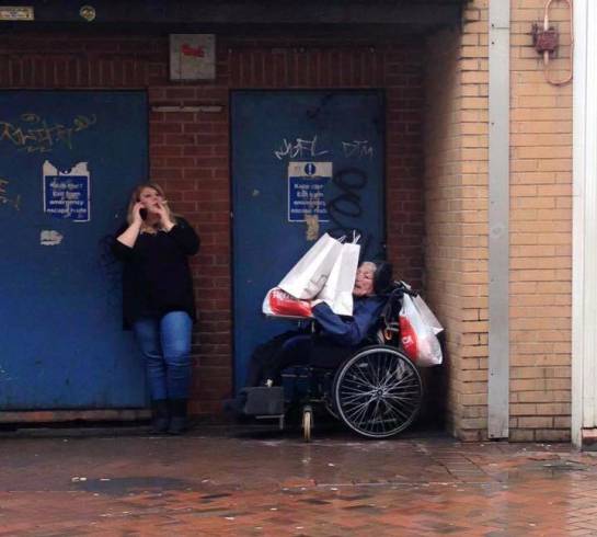 Mientras "realizaba su trabajo", fue fotografiada cometiendo un acto de crueldad con un hombre de la tercera edad que se moviliza en silla de ruedas.