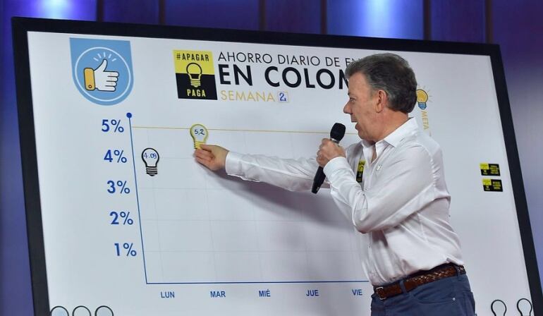 El presidente Juan Manuel Santos reportó que se bajó de nuevo el promedio de ahorro diario pasando del 5,2 % que se registró en el consumo del martes, a un 4,5 % que se registró para este miércoles.