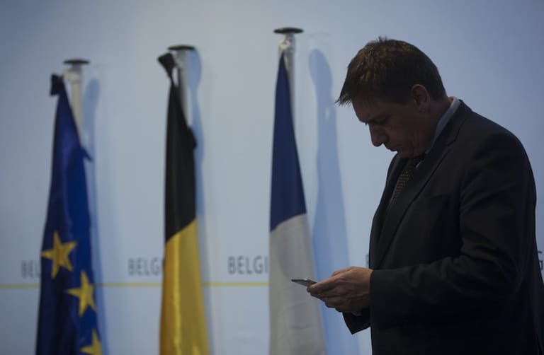 El ministro del Interior belga Jan Jambon da una rueda de prensa en Bruselas , Bélgica, después de la operación antiterrorista en el Molenbeek.