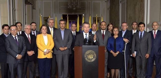 A la reunión convocada en la Casa de Nariño, y quienes al final acompañaron al presidente Santos en su alocución a los colombianos, resaltó el vicepresidente, Germán Vargas Lleras.