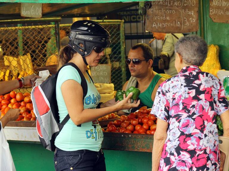 Tres mujeres hacen compras en un mercado en La Habana (Cuba).
