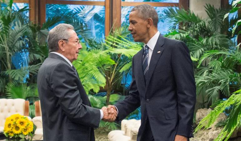“Agradecí al presidente Castro por albergar los diálogos de paz entre el gobierno y las Farc y somos optimistas en que Colombia pueda conseguir una paz duradera y justa”, dijo Obama