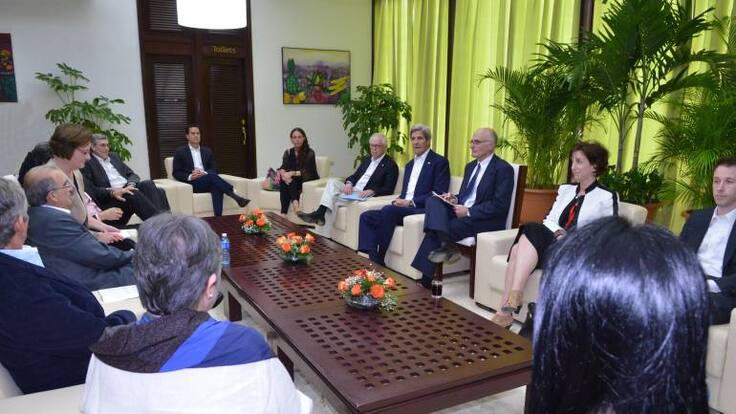 Luego de concluir una reunión de hora y media con el secretario de Estado de Estados Unidos en La Habana para dialogar sobre los avances del proceso de paz el jefe negociador del gobierno, Humberto De la Calle, contó detalles del encuentro con él y el equipo de paz.