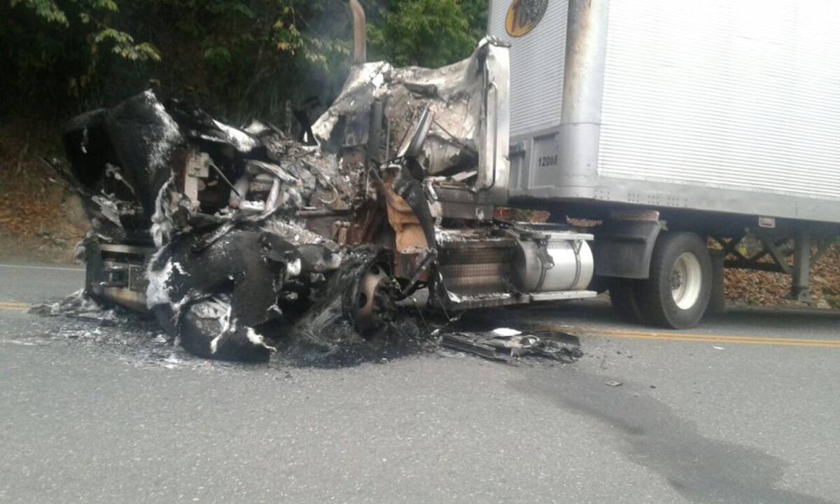 Carros incinerados en la vía a la costa en el marco del paro armado del clan Usuga