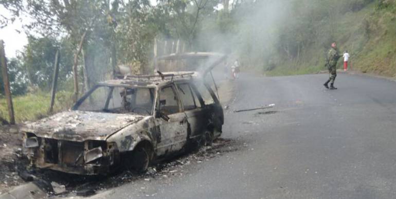 Tres uniformados asesinados, varios heridos y 5 vehículos quemados deja paro en Antioquia