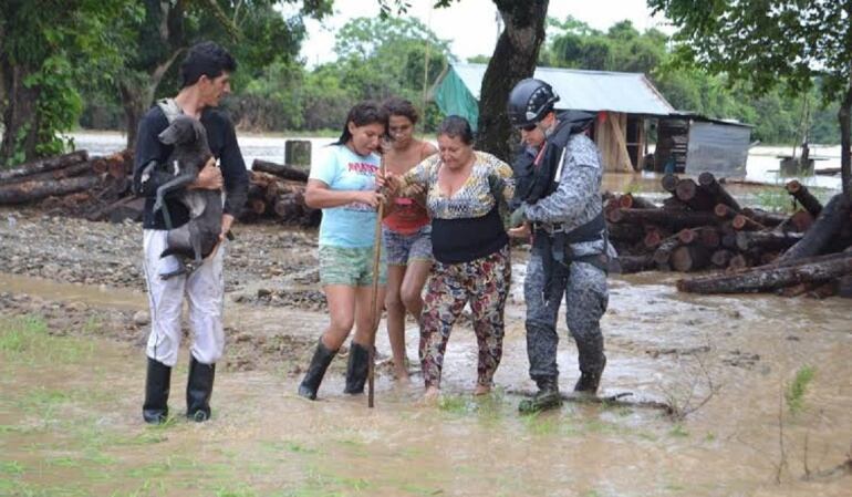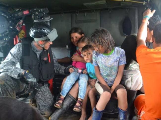 El capitán Mauricio Melgarejo, piloto de la Fuerza Aérea, le dijo a Caracol Radio que su institución envío un helicóptero, “se llegó al punto en coordinación con la Policía y se adelantó la extracción de 16 personas, de los cuales 10 eran adultos, seis niños y tres caninos que quedaron en medio del afluente y no tenían un lugar por tierra para poder escapar del río”.