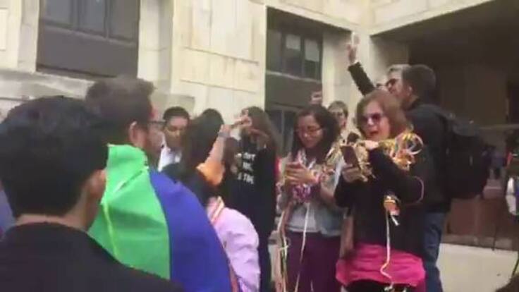 Tras conocerse la decisión que tomó la Sala Plena de la Corte Constitucional de dar vía libre a que parejas del mismo sexo en Colombia puedan contraer matrimonio los miembros de la comunidad LGBTI celebraron esta decisión.