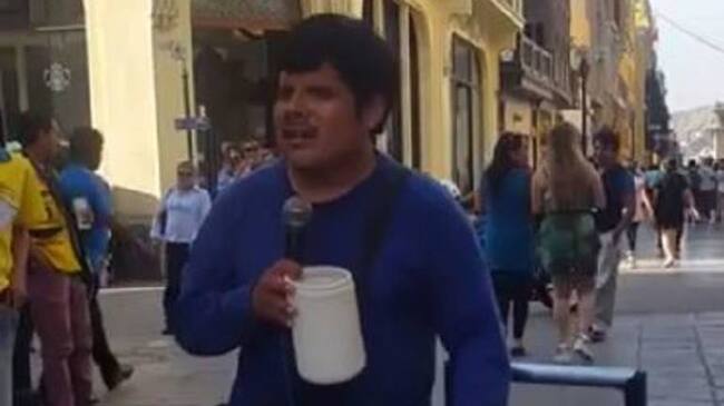 El imitador ciego de Nicky Jam que pide monedas en Perú