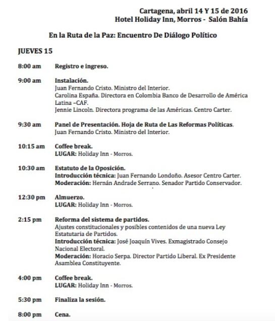 La convocatoria la realizó el Ministerio del Interior en colaboración con el Centro Carter y con el apoyo de la Corporación Andina de Fomento. El foro será este jueves y viernes en Cartagena y se abordarán todos los temas referentes a las reformas al sistema de partidos políticos, sistema electoral y estatuto de la oposición.