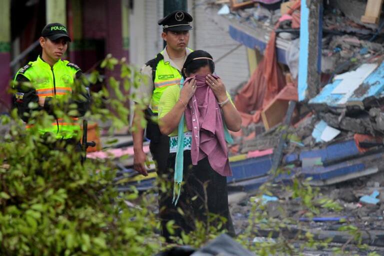 • Policía y habitantes de Pedernales (Ecuador), afectado por el terremoto de 7,8 grados en la escala de Richter registrado el sábado en la costa norte de Ecuador.