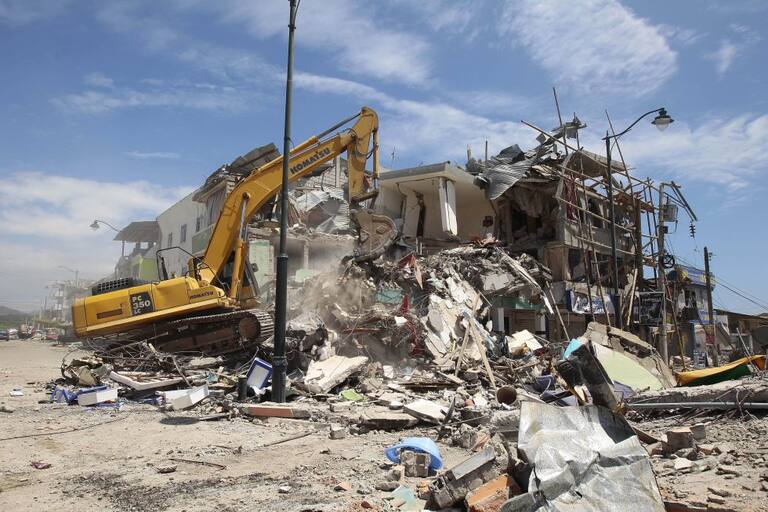 • El ministro ecuatoriano del Interior, José Serrano, comparó hoy con una zona de bombardeo a la ciudad de Pedernales.