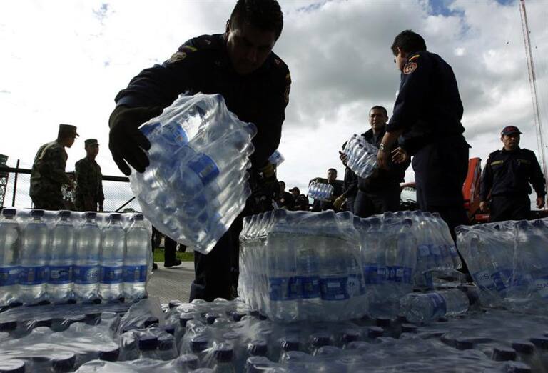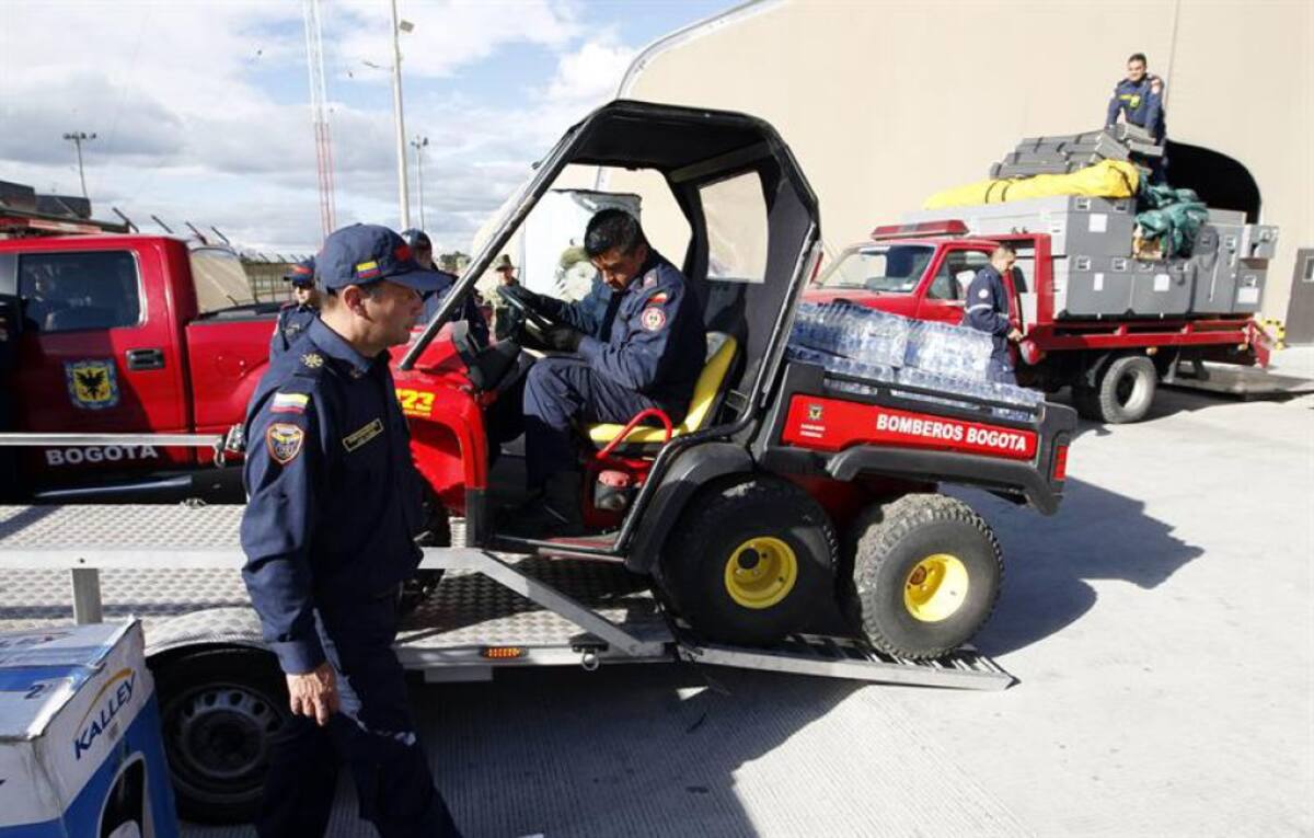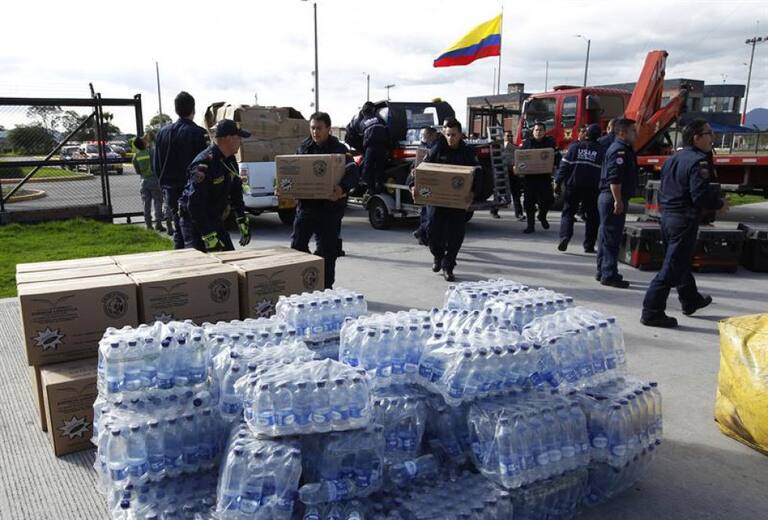 • Socorristas colombianos trasladan víveres y maquinaria para ayudar a las labores humanitarias y de rescate en el Ecuador.