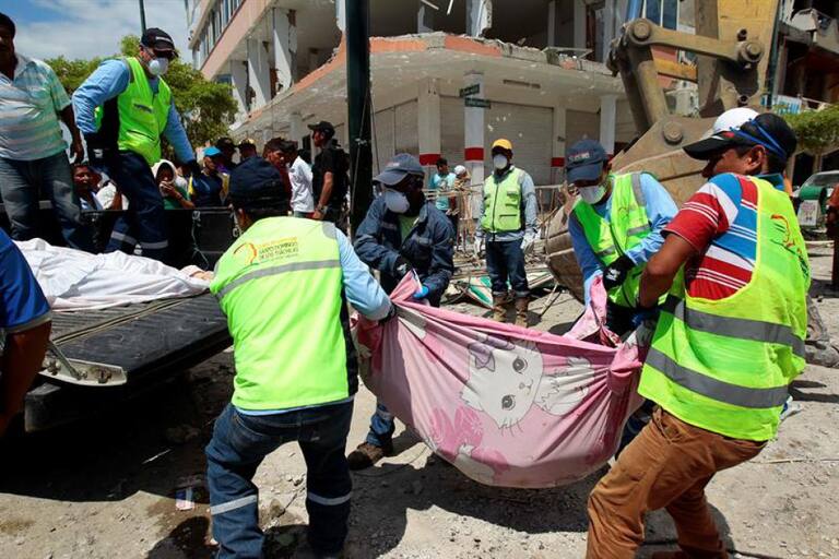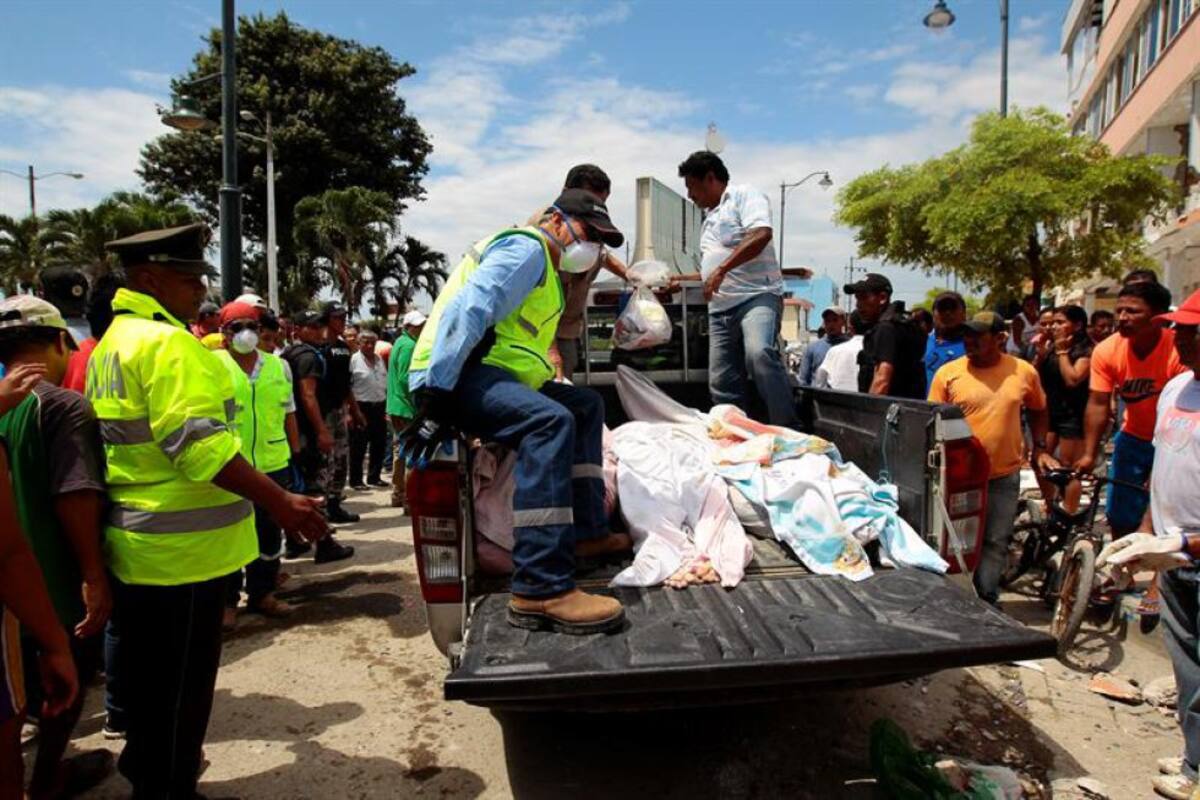 • Pobladores de Pedernales (Ecuador) transportan a un familiar fallecido por el terremoto de 7,8 grados en la escala de Richter.