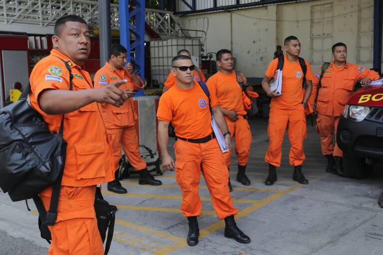 • Socorristas del equipo Búsqueda y Rescate Urbano de El Salvador se prepara para salir a Ecuador con el fin de ayudar en tareas de rescate y humanitarias.