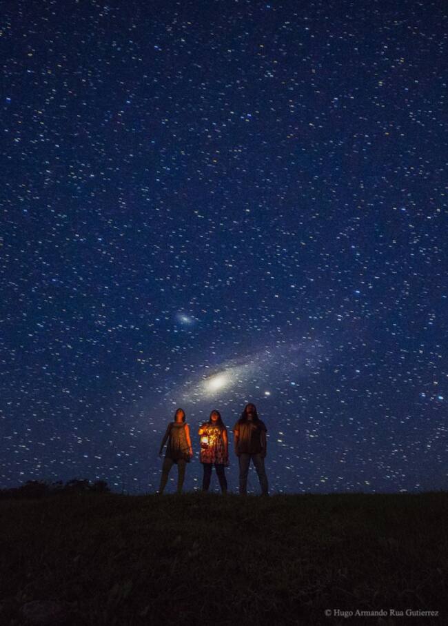 El nombre de la imagen es “Andromeda se levanta sobre Colombia”, de acuerdo con la explicación del APOD, en la imagen tomada el pasado 26 de julio, cuando se encontraban tres amigos en la cima de una montaña, los cuales se encuentran a 250 metros de distancia y unos 50 metros de altura.