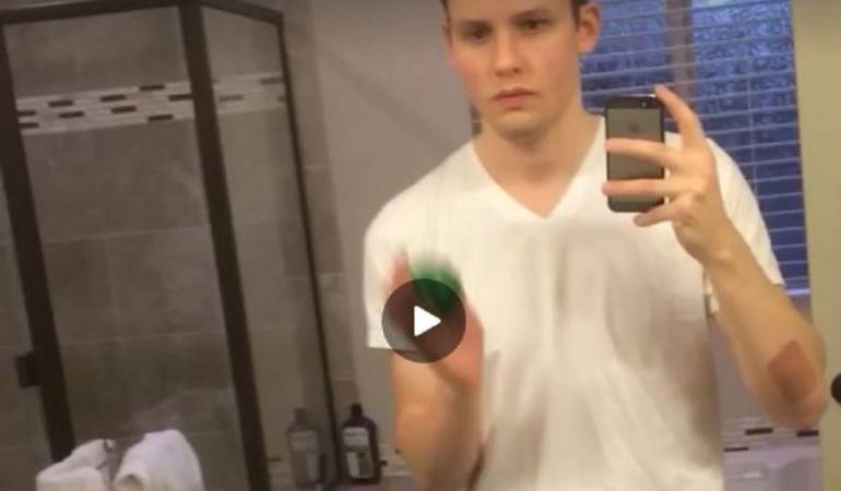 Kevin Parry es el joven que se lanza a sí mismo una pelota y se toma una extraña selfie de 180 grados.