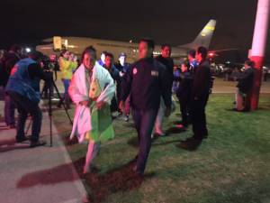 Médicos de la Secretaría de Salud, de la Cruz Roja y funcionarios de la Cancillería esperaron a 49 de 115 colombianos, víctimas del terremoto en Ecuador, repatriados en aviones de la Fuerza Aérea y que llegaron a Bogotá.