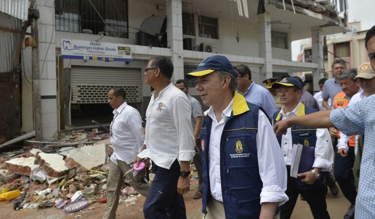 Los presidentes de Colombia y Ecuador visitaron Tarqui, uno de los barrios más afectados en Manta, provincia de Manabí. Santos entregó las ayudas, primero en la base militar de Manta y luego en la base naval, donde Correa recibió alimentos y agua respectivamente para los damnificados por el terremoto en Ecuador.