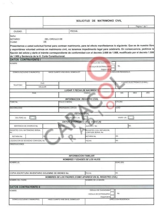 Horas después de que la Corte Constitucional aprobara que notarios y jueces pueden celebrar matrimonios civiles de parejas del mismo sexo, la Unión Colegiada de Notariado Colombiano ya tiene listo el formato único que utilizará para la solicitud de la ceremonia.
